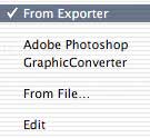 The menu item "From Exporter" assigns the default creator code of the current image Exporter.
