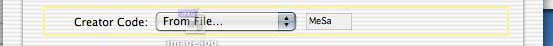 It is also possible to use Drag & Drop to assing a creator code from a file. Drag a file from a Finder window to the settings dialog and drop it nearby the pop-up menu.