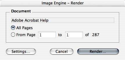 To apply the Render function to the front document of Adobe Acrobat, choose the menu "ImageEngine" > "Render