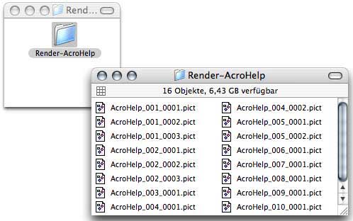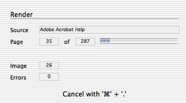 The Render function uses the render method of the Adobe Acrobat application to get the images from the source PDF document. The images are saved either as Macintosh Pictures or in the corresponding format when using one of the QuickTime Image Exporters of Mac OS.