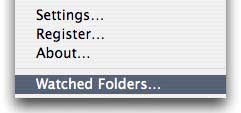 To access the adminstration window for Watched Folders please use the menu or the toolbar button.