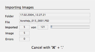 ImageEngine now shows a progress window. The function may be cancelled by pressing the key combination "Cmd" + "." or the "esc" key.