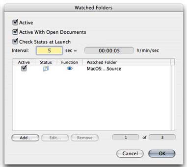 The file system folders may be arranged at different volumes as well as at network volumes, but each file system folder can be used only once in a particular Watched Folder.